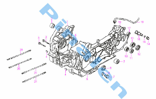 Packbox vänster 19,8x30x5mm Från vev till främre variator. Nummer 07 på 4taktsmotorn och nummer 6 på..