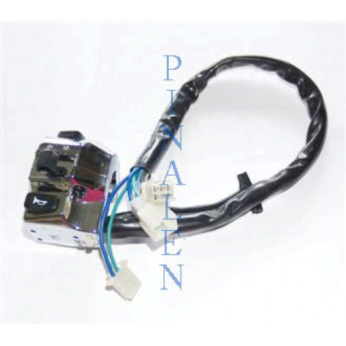 Handtags-switch vänster. Ny modell med gul start-knapp. Inget bromsgreppsfäste på bakstycket av switchen.